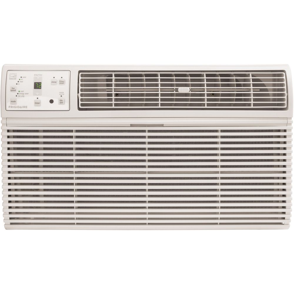 Frigidaire Built-In Room Air Conditioner The Frigidaire FRA10EHT2 10,000 BTU 230-Volt Through-the-Wall Air Conditioner with 10,600 BTU Supplemental Heat is perfect for rooms up to 500 square feet. In addition to cooling, this versatile unit also offers a supplemental heat capability, providing you with an additional heat source when needed. It quickly cools the room on hot days and quiet operation keeps you comfortable without keeping you awake. Features include electronic controls, full function remote control, 4-way air direction control and multiple speeds. The antimicrobial filter cleans the air removing harmful bacteria, plus, the clean filter alert notifies you when the filter needs to be cleaned. This unit is designed for through-the-wall installation and is not designed for standard window installation. This unit also requires a special 230V electrical outlet and will not operate with a standard 115V household electrical outlet.